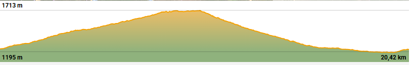 Perfil de la ruta: Como podéis observar, tanto el ascenso como el descenso tienen una suave pendiente que nos permitirá disfrutar del paseo sin demasiado esfuerzo. |